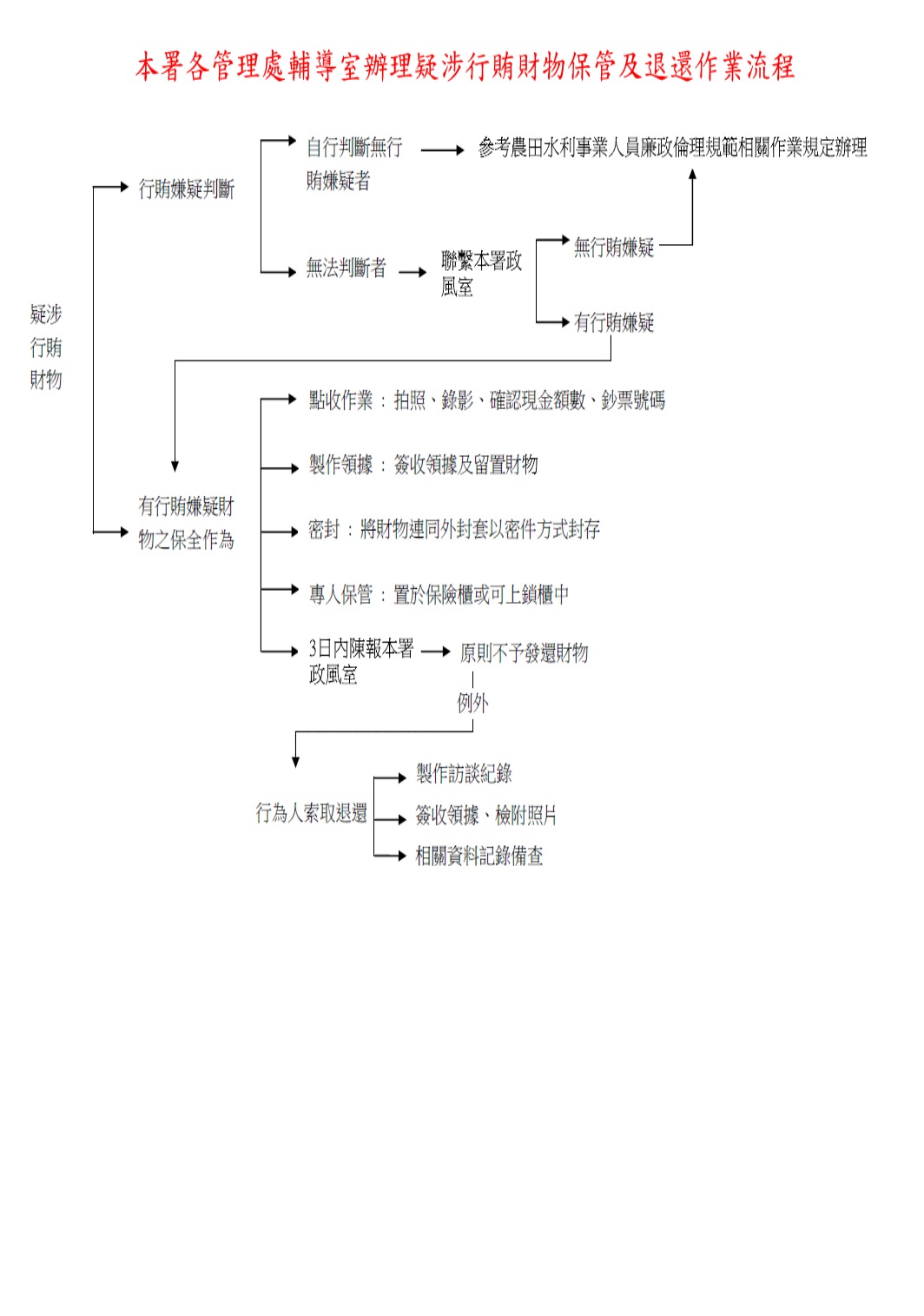 疑涉行賄財物保管及退還作流程表