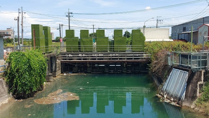 本制水閘於1930年通水啟用,期間因年久結構風化嚴重,已在民國89年完成改建,結構體為鋼筋混凝土,門扉為銲接不銹鋼結構,閘門寬2.0m*高2.3m*3扇,設計通水量19.4cms,受益面積1萬2百公頃;臨側八掌溪支線取水門,閘門寬2.5m*高 2.3m*2扇,設計通水量21.8cms,受益面積1萬8百公頃;朴子支線取水門,閘門寬1.5m*高2.1m*2扇,設計通水量7cms,受益面積3千6百公頃。